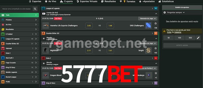 O 5777bet oferece uma grande seleção de opções de apostas em e-sports com probabilidades competitivas